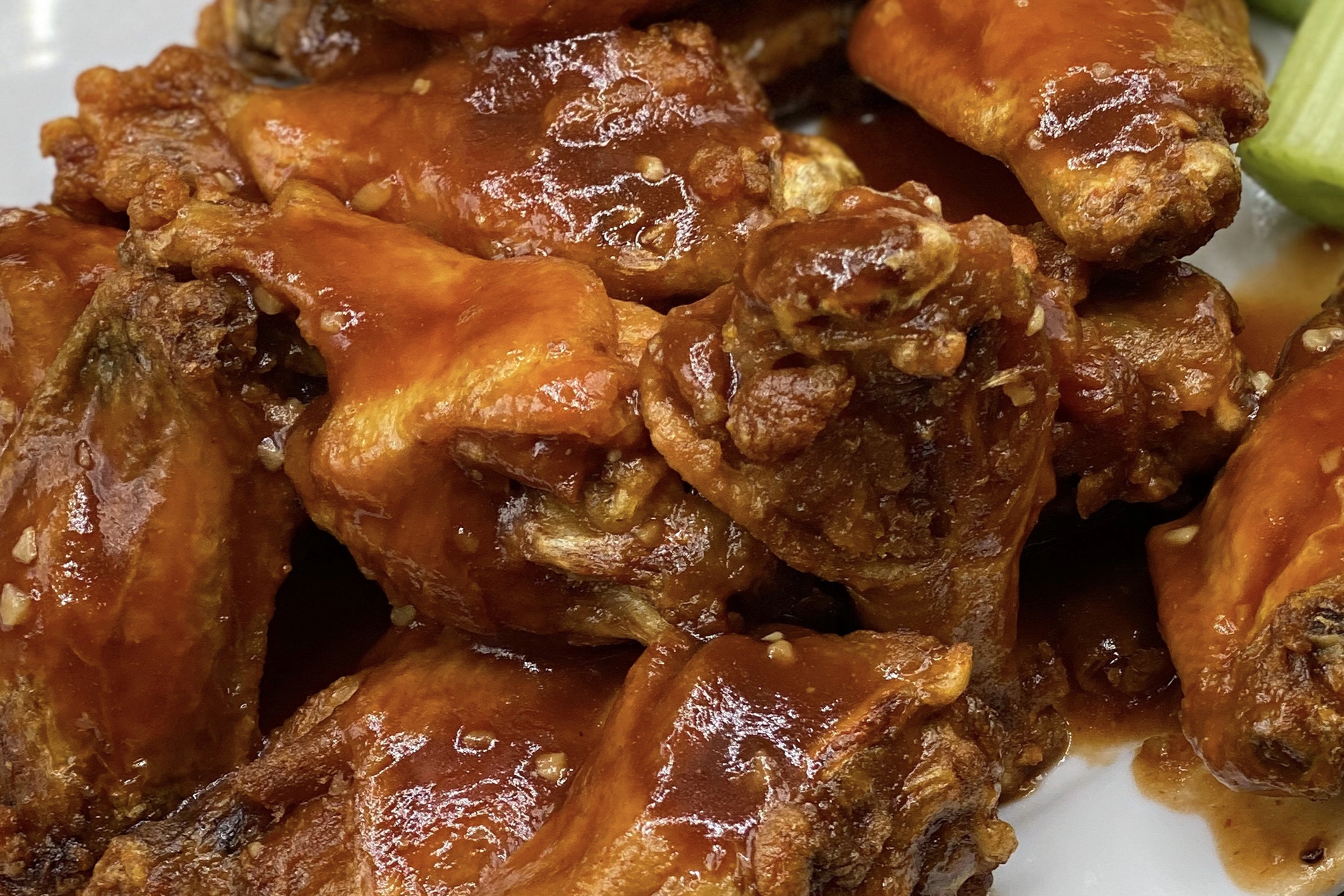 Putters Famous Wings Generously Tossed in House Creation of Sweet and Smokey. Served with Putters Ranch or Bleu